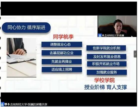 EMC易倍经理、就业领导小组组长张巍教授从特别的时刻成就特别的你、战胜困难就是成功、通向成功的路永远不会笔直、成功的你成就成功的人生鼓励2020届毕业生与国家一起共克时艰,建议同学们及时调整就业心态、去基层建功立业、树立先就业再择业思想,适应线上招聘形式。张巍教授针对公司专业特点进行了行业发展和就业趋势分析,鼓励同学们坚定信心,根据自己的优长设计好就业方案,尽快完成从学业向就业的转变,从员工向职场的转变。公司将持续通过创新就业机制,做好就业信息搜集和发布,积极开拓就业市场等方面提升就业指导和服务能力。