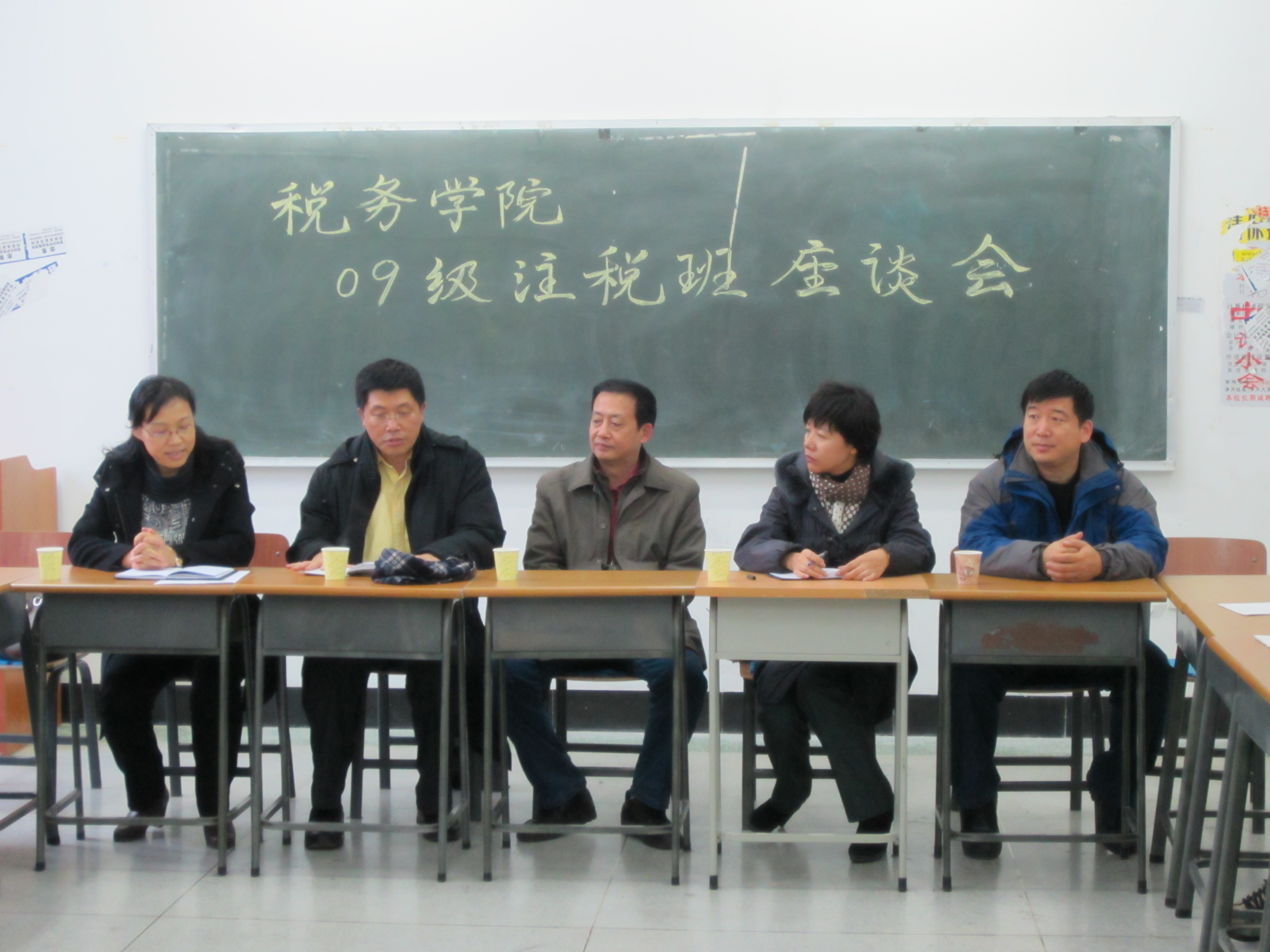 座谈会以一种很温馨轻松的方式开始,五位领导老师与注税班全体同学围坐在一起,像一家人一样交谈起来。其间,同学们畅所欲言,将自己面对现在学习、生活以及将面临的就业,择业上的问题及对注税班发展的建议提出来,各位老师都给予了极其全面清晰的回答,同学们都对老师们的建议表示赞同和感谢。