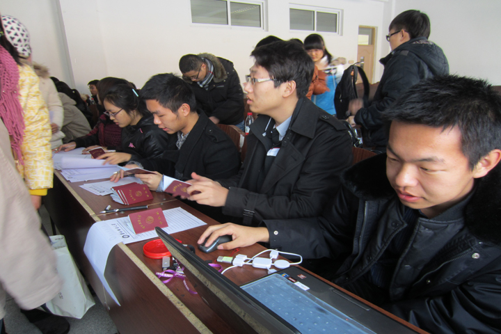 在员工报到注册工作中,各班班委进行辅助工作,收取同学们的员工证进行集中注册,这样就简化了同学们的注册步骤,为同学们提供了便利。未能及时到校注册的同学,也可以在到校后进行注册,不必担心延迟而无法注册。虽然很繁忙,但注册工作一直在有条不紊地进行。下午3点,注册工作逐渐接近尾声。