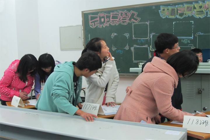 比赛由各班级派出代表队。比赛共分六个比赛环节以及一个游戏环节,各环节分数累加,最后评出名次。首先是以音频题与视频题为主的第一关“五福临门”,选手们各显神通;第二关“生死极限”则是30秒快速答题,比拼正确率;第三关是考察选手们的综合能力的“轮番上阵”,从多角度、多方面出题。中场休息时,进入到游戏环节,新颖的官兵抓贼游戏,吸引了许多观众的参与。游戏过后,新的一轮战役开始,第四关是“狭路相逢”,各班按顺序选择不同类型的题目,更加考验了选手们的各方面知识的了解程度。第五关“群雄逐鹿”,采用了新颖的手机抢答方式,各组选手纷纷踊跃抢答。最后一关“险象环生”,按照分数,各班可以选择10分、30分及50分的题目,答对得分,答错扣分,真不愧是险象环生。最后,由赵黎光老师对本次活动进行了点评。