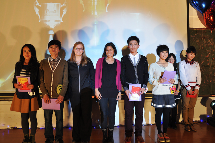 10月11日晚,由公司学习部主办的第九届“税英杯”新生英语口语大赛在1101报告厅隆重拉开序幕,团委书记宋立东老师,副书记赵黎光老师,团委张雪媛老师,团委杨先越老师,外教老师以及各班小班导莅临了本次比赛。