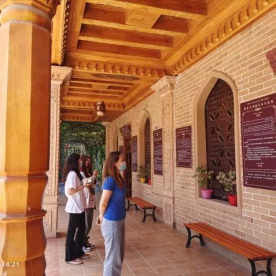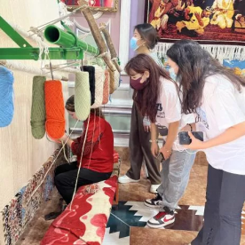2022年7月13日,习近平总书记在新疆考察期间来到新疆博物馆,参观《新疆历史文化文物展》,观看民族史诗《玛纳斯》说唱展示,并同非物质文化遗产传承人亲切交流。他指出“要加强非物质文化遗产保护传承,把各民族优秀传统文化发扬光大。”为传承和发扬优秀传统文化,增进民族文化自信和创造力,社会实践小分队来到了莎车县非物质文化遗产博览园。博览园以现代文化为引领,将现代建筑技术和民俗建筑风格相融合,借助新疆各类民俗装饰手法,充分展示了莎车民俗民风,将“昆仑文化、佛教文化、蒙古文化、丝路文化、中原文化、西域文化、草原文化、河流文化、玉石文化、音乐文化、民俗文化”等历史文化融为一炉,体现了多种文化相交相融相衬托的特性,整体呈现了莎车县作为中华文化血脉在边疆历史标志的特点,展现出莎车厚重的历史以及作为丝绸之路重镇交汇多样文化的辉煌。园内集中展现了莎车县101项非物质文化遗产,师生们通过该园了解莎车多民族的民俗民风,体验了莎车县民俗风情,欣赏民族歌舞十二木卡姆音乐艺术,情境式再现南疆民俗风情与木卡姆文化,重温了莎车的辉煌过去,同时了解了莎车县各民族特色及十二木卡姆等非物质文化遗产的历史,观看了手工艺人如何制作艾德莱斯以及地毯等。大家深刻认识到把非物质文化遗产保护好、传承好、利用好,实现非物质文化可持续发展的重要性。