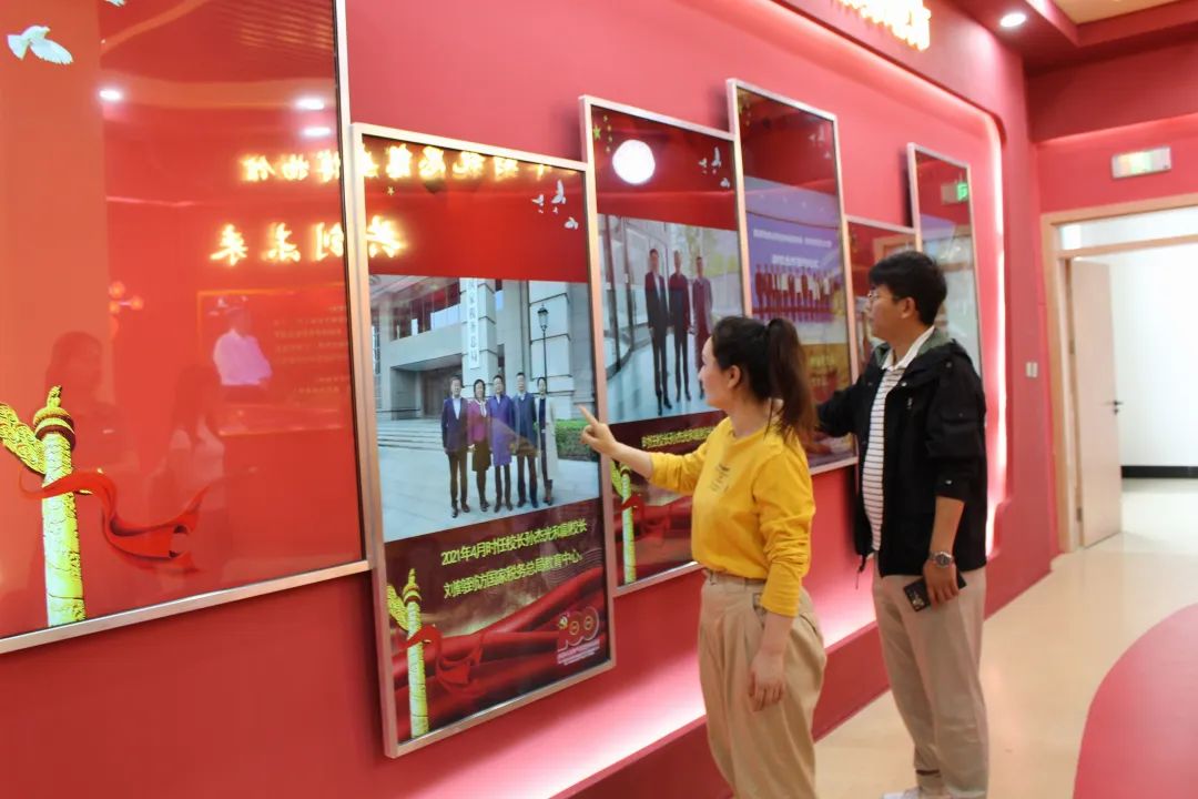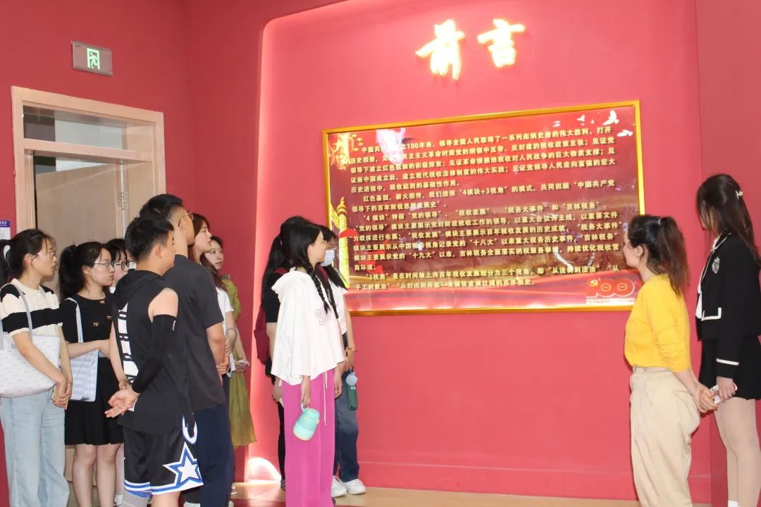 本次活动共分三个阶段进行。第一阶段跟随讲解员的讲解,进行集体参观。按照建党百年为时间轴主线,从“党的领导”、“税收发展”、“吉林税务”、“税务大事件”四个模块进行讲解,给同学们一定的视听冲击。