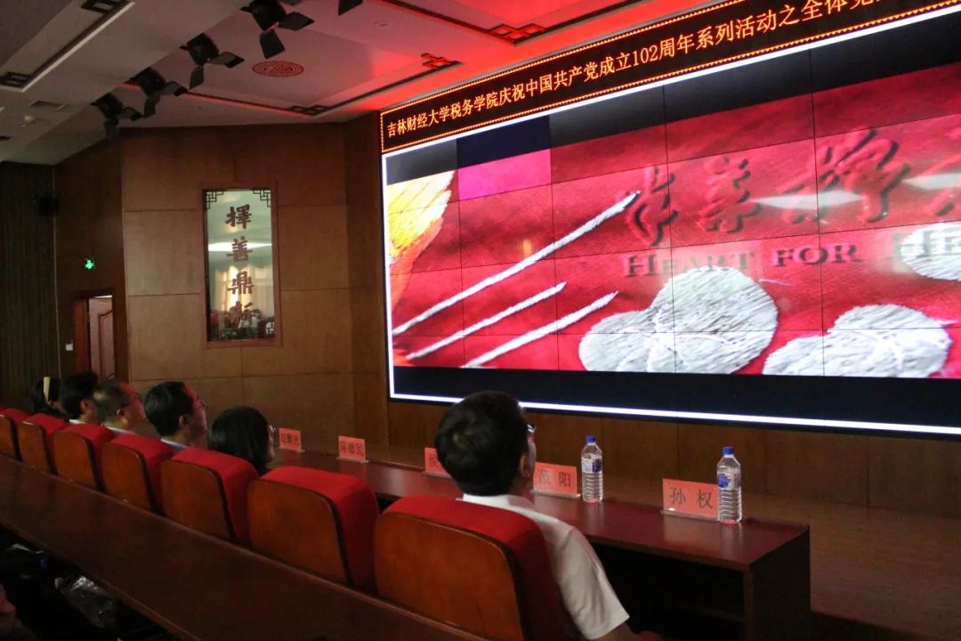 公司党委书记陈德民,党委副书记赵黎光,专职组织员侯旭,团委副书记、税务本科生党支部组织委员李广野,税务研究生党支部书记范阳,财政研究生党支部书记努尔妮萨,财政本科生党支部书记孙权带领公司全体党员、入党积极分子和马列协会成员共同观看红色电影《半条棉被》。电影讲述了一段中国工农红军同人民群众风雨同舟、血脉相通、生死与共的军民鱼水情深的历史。通过观看电影,师生党员对“江山就是人民,人民就是江山”有了更深的感悟,从英雄先烈们的身上,汲取到初心传承的力量,感受到中国共产党就是自己有一条被子,也要剪下半条给老百姓的人,继而不断激励着一代又一代党领导下的有志青年,为坚定不移自己的初心使命而时刻激励自己,为实现中华民族伟大复兴贡献出自己的力量。