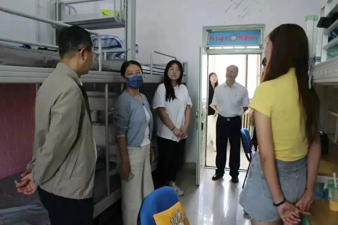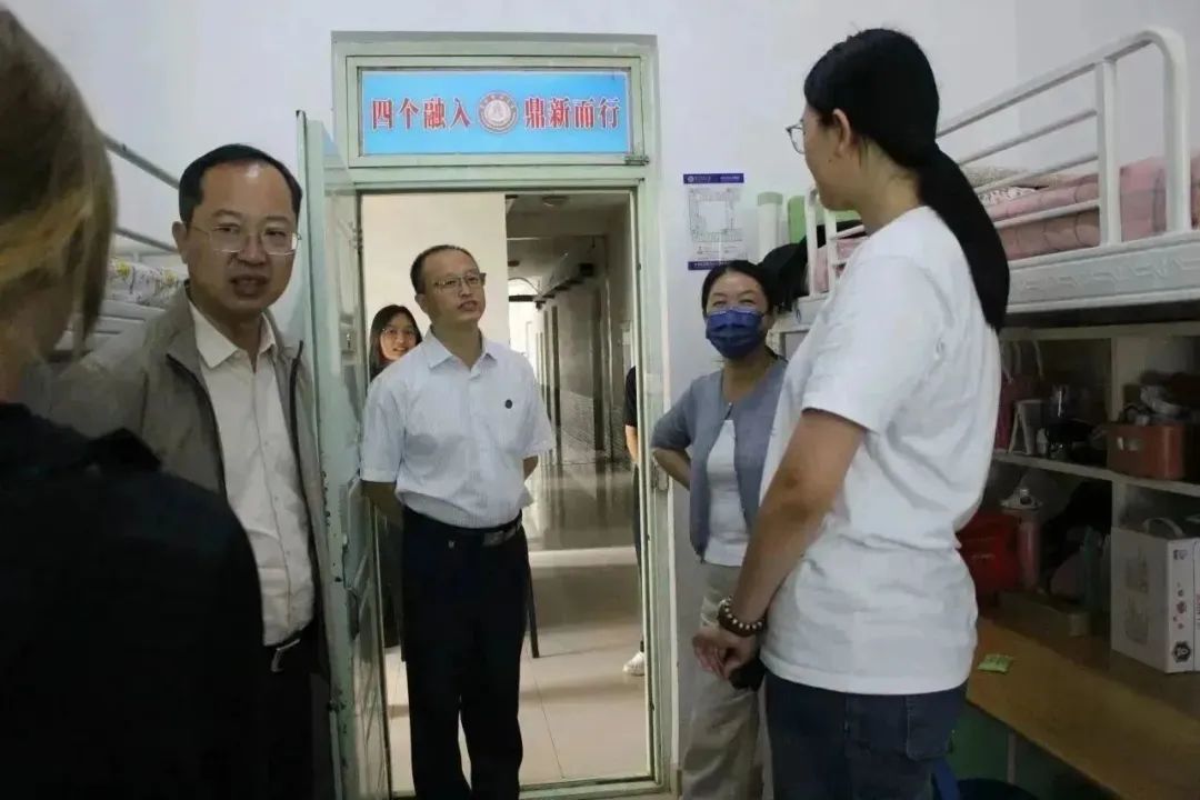 为深入了解2023级新生的入住情况,加强新生宿舍管理,帮助新生能够更快的转变角色,尽快适应新的校园生活,激励大家以积极的精神面貌投入到大公司园学习和生活中。在新生报到之际的当日下午,公司党委书记陈德民,EMC易倍经理张巍、公司党委副书记赵黎光,走访新生宿舍,为新生送去暖心的关怀和问候。同时领导们与新生们进行了深入交流,仔细了解新生们的情况,鼓励他们在大学期间努力学习,锻炼提升自己的能力,勇敢追逐自己的热爱和理想。