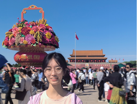 天安门广场给我留下了深刻的印象。每当我站在广场上,看着人海涌动的景象,我就不禁想象当年的庄严仪式和激情四溢的场面。而广场上的人民英雄纪念碑和毛主席纪念堂,让我想起中国革命的艰辛与伟大。站在这里,我深刻地感受到了中国人民为了自由和独立所做出的巨大牺牲,也更加珍惜今天来之不易的幸福生活。今年的花篮比往年多出了五谷的元素,寓意五谷丰登,致敬“三农”,礼赞丰收;致敬劳动,祝福祖国。