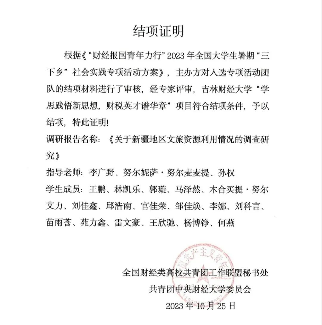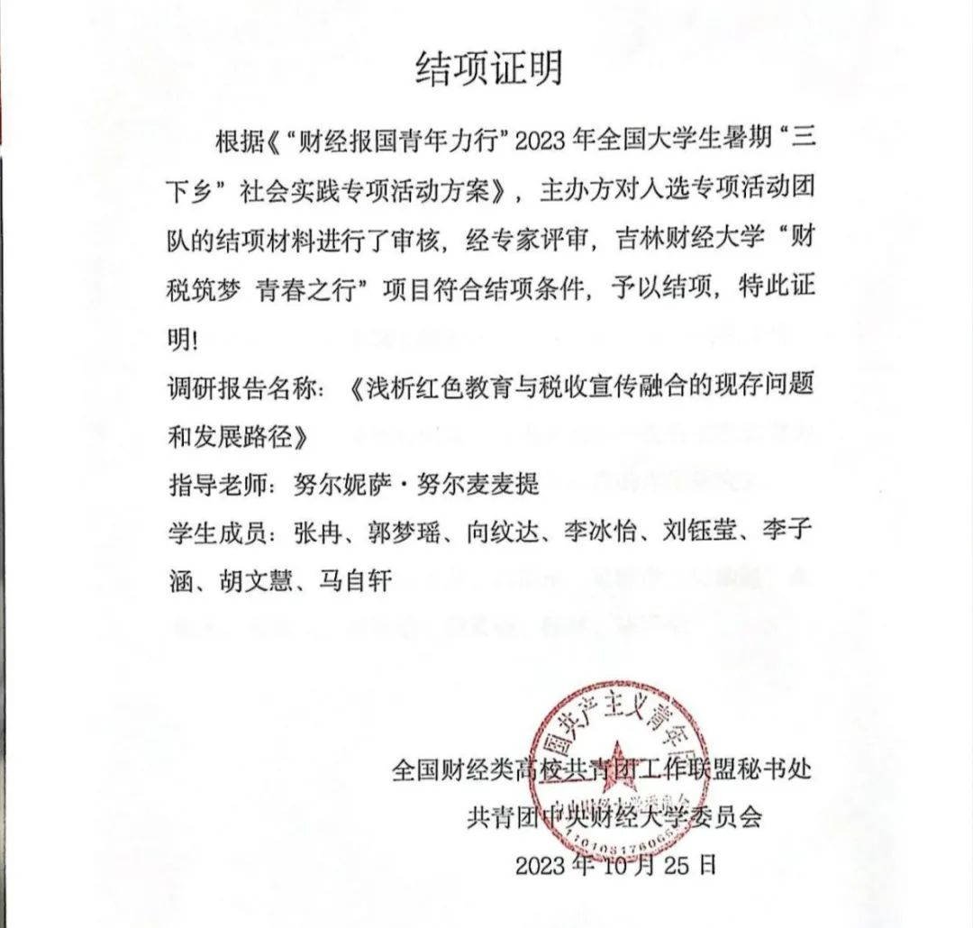 近日,全国财经类高校共青团工作联盟秘书处共青团中央财经大学委员会公布了《“财经报国青年力行”2023年全国老员工暑期“三下乡”社会实践专项活动结项团队名单公布》文件,决定对98支团队予以结项。EMC易倍“财经报国青年力行”实践团和“青春薪火”实践团的项目在本次实践活动中成功结项。