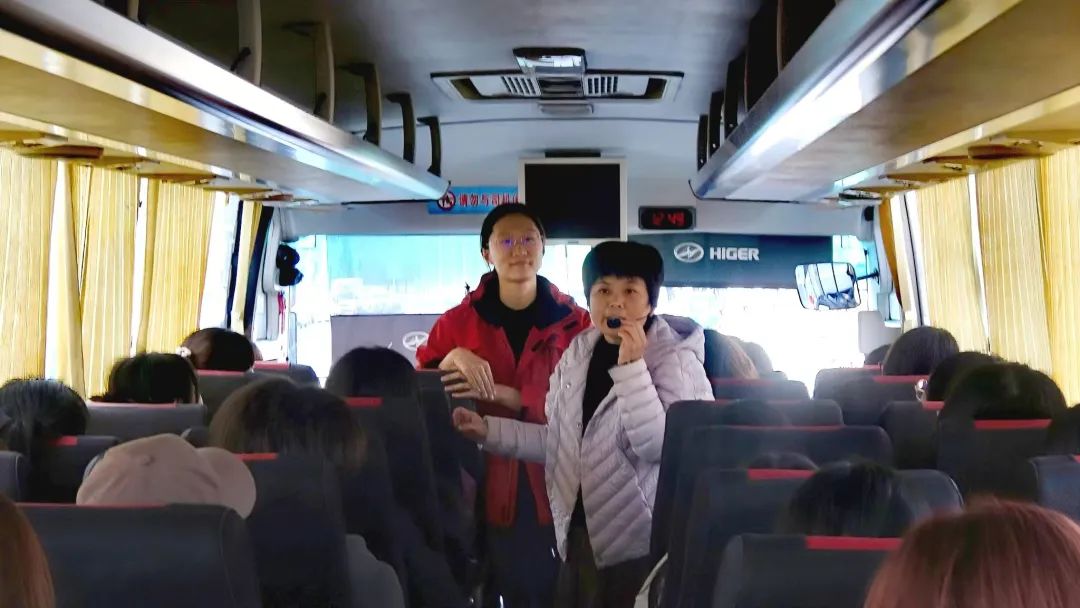 在大巴车上,郭雅娴与李美琦老师为同学们开展了一次生动有趣的车厢教学,两位老师将此次入学教育内容与公共产品供给等专业知识相结合,充分调动同学们的好奇心,老师们与同学们在欢声笑语中积极互动,满怀憧憬与好奇,走进了长春公共交通集团。在这里,师生共同开启了一段独特的探索之旅。