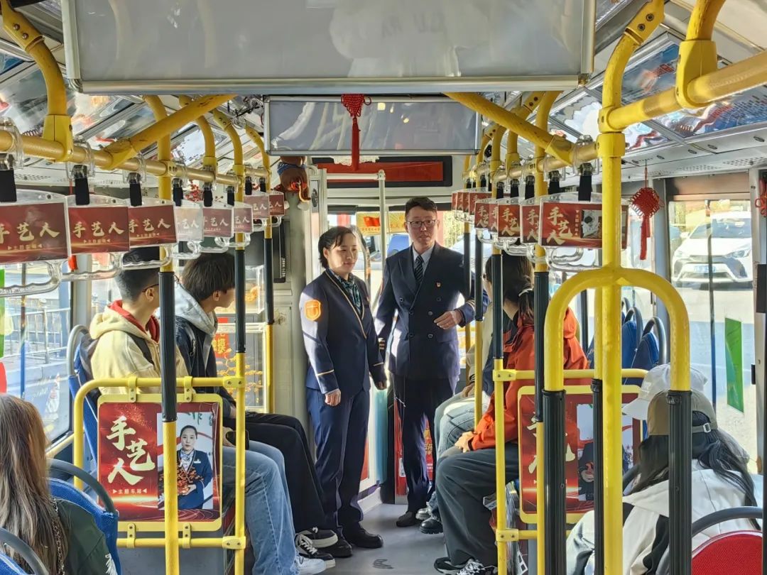 在长春公交集团南通公司13路,工作人员首先带领大家参观两台主题车厢,主题分别为“手织编制主题车厢”和“手艺人主题车厢”,同学们与女子车队驾驶员进行交流互动,了解公交女驾驶员的工作和生活。接着由车队讲解员带领参观车队党建活动阵地、王雪尧劳模创新工作室、爱心妈咪小屋、驾驶员休息室等场所,了解车队的历史、荣誉和工作特色、日常运营管理、后勤保障工作等。同学们深入了解了公共交通的日常运作,其完善的管理制度和严谨的工作态度让同学们赞叹不已,同时也让同学们受益匪浅,未来将以更加严谨认真的态度投入到学习生活中。
