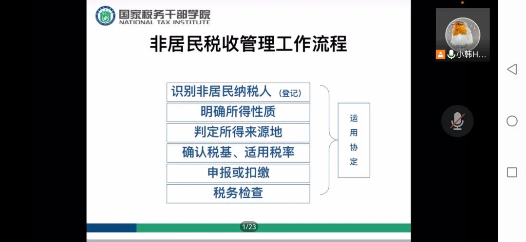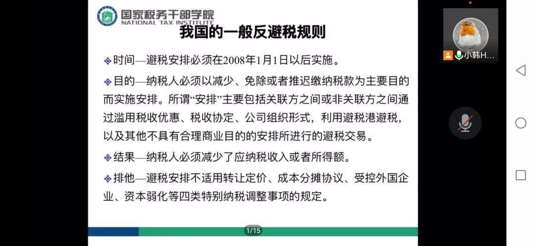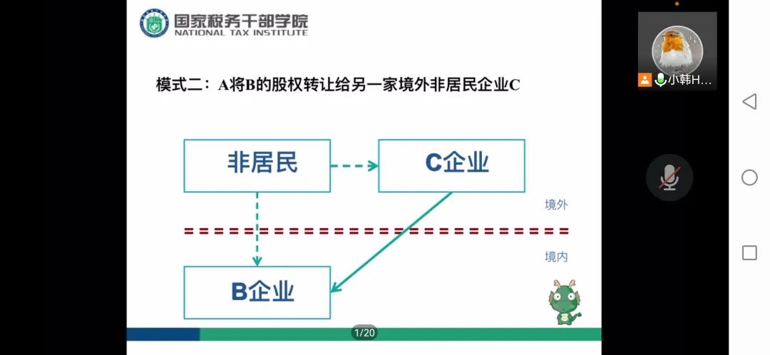本次课程韩凌宇老师为同学们讲授了“非居民间接股权转让税收问题”的相关知识。首先,韩老师讲解了非居民企业相关概念,概述了非居民税收管理工作的流程。其次,韩老师以图解的方式描述了非居民股权转让的三种基本模式,并将三种模式分类为直接股权转让和间接股权转让,同时分析了关于股权转让的细节性技术问题。最后,韩老师从基本概念、特征、中国和国际的应用三方面讲授了一般反避税规则,并结合“沃尔玛收购好又多的非居民企业所得税征税方案”的典型案例对非居民企业间接股权转让实例做出详细的分析。