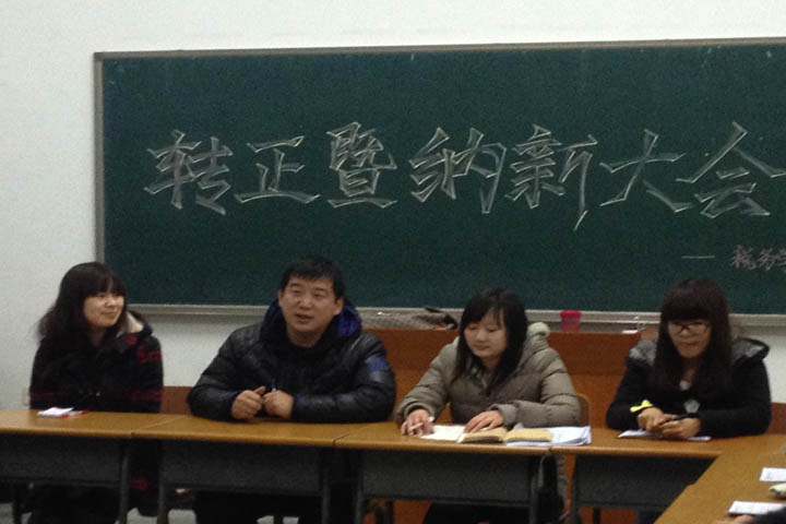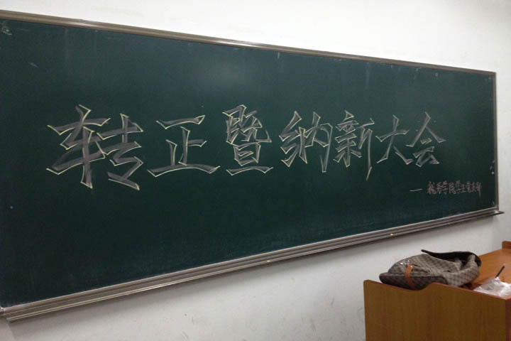 此次大会会议分为两大阶段。第一阶段为预备党员转正仪式,首先,师延龙等四位申请转正的预备党员依次向党组织汇报了自己的思想动态和党性修养,表示自己入党后坚持的原则和努力的方向。接着,与会的正式党员共同对四位预备党员的资料、背景、思想素质等方面进行了讨论,并全票通过了四位同学的转正申请。第二阶段为党员纳新仪式,于嘉音等19位入党积极分子宣读《入党志愿书》,向大会汇报自己对党的认识、入党动机、现实表现等。然后,经过党员的讨论与投票,决定吸收于嘉音等19位入党积极分子为预备党员。