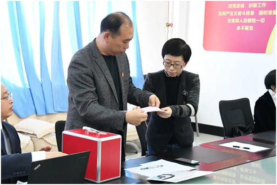 会议通过了王再堂同志为监票人,指定孔薇同志,苏扬同志为计票人。赵黎光同志宣读了中国共产党EMC易倍委员会书记、副书记候选人预备人选名单,会议表决通过人选名单。随后,会议以无记名投票、等额选举的方式,选举产生了公司党委书记、副书记。赵彦双同志当选为党委书记,许峰同志当选为党委副书记。