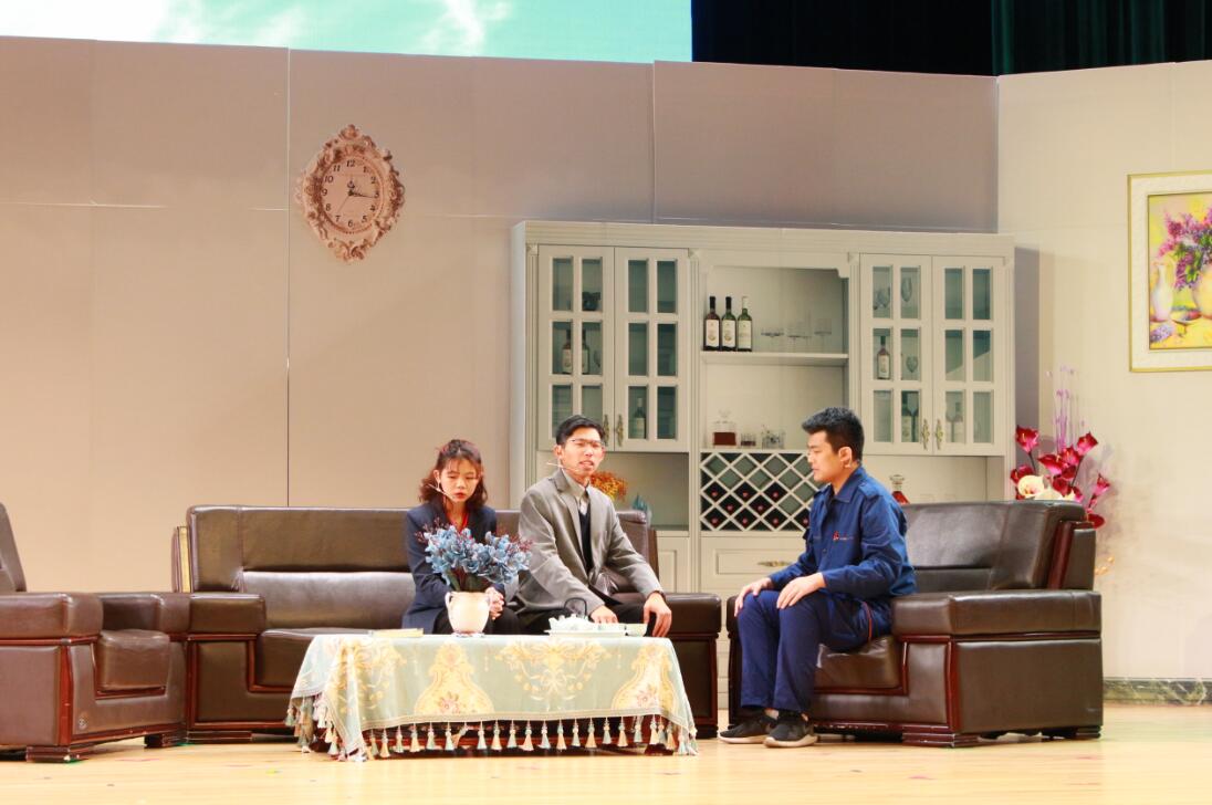 在主题教育期间正值公司纪委举办“EMC易倍官网第六届廉政文化建设活动月”,活动期间除了在广大师生中开展廉政文化书画作品征集、微视频创作等多种艺术形式宣传崇尚廉洁的价值理念外,为了丰富廉洁教育形式,公司荆风话剧社按照公司党委、校纪委推动全面从严治党向基层延伸,加强党风廉政建设和反腐败工作的总要求,经三个多月的精心准备,三十余次排练,精心排演了反腐倡廉话剧《清与浊》,话剧《清与浊》是由中共广东省直属机关工作委员会、中共广东省直属机关纪律检查工作委员会主办及承办,并由广州踏歌起舞文化传播有限公司制作的话剧《黑瞳》改编而来的。话剧围绕改革开放以来,国有企业不断壮大,为推动经济社会发展做出了巨大贡献,主人翁吴曼华和林儒是夫妻。吴曼华作为国有企业明华集团的董事长,在经济发展的浪潮中丢掉了初心,忘记了根本,将党员这第一身份抛之脑后。林儒,作为大学教授,建筑工程设计师,正直廉洁。国家投资建设几所希望小学,一些蛀虫又想从中牟利。作为村霸的保护伞,吴曼华把国企当成“私家花园”,伴随着各层利益关系交织渐密,她也一步步陷入了无尽的深渊。剧中林儒作为吴曼华的丈夫,多次苦口婆心以“不忘初心”、“为人根本”、“道德约束”等道理来劝诫妻子吴曼华,但是法网恢恢,疏而不漏,藐视党纪国法,触犯刑律的人终将被送上人民审判台,吴曼华最终难逃法网。话剧彰显了党和国家加强党风廉政建设、严惩腐败、扫除黑恶势力的坚强决心。