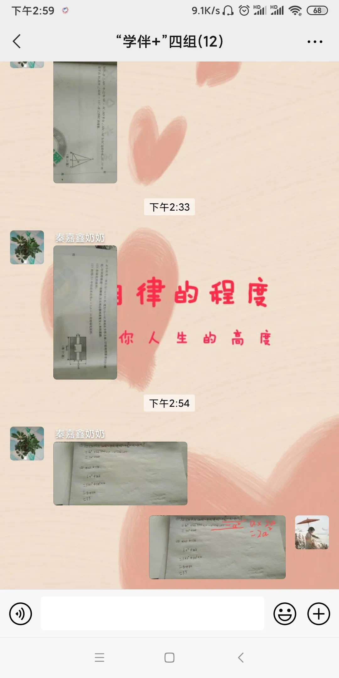 我主要辅导科目是数学。我们是一起辅导秦嘉鑫同学的。根据嘉鑫同学不懂的题目集中进行讲解,概括知识点,再举一反三,反复练题,直到弄懂该类题型。然后再根据嘉鑫同学的知识弱点进行专项训练,逐一击破。并且数学这一学科主要讲究逻辑性,培养他的逻辑思考能力是关键。讲题不光要讲题目本身,更要教会他如何去思考题目,这个是关键所在。因此给嘉鑫弟弟讲题时主要注重他对题目题型的思考,再结合题目中的知识点进行概括讲解,这样既可以使他弄懂题目,还可以提升他的逻辑思维能力。