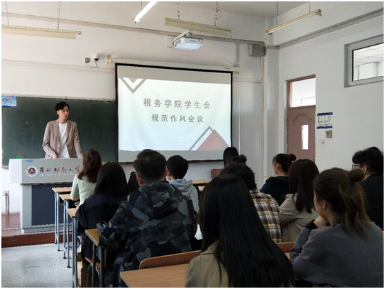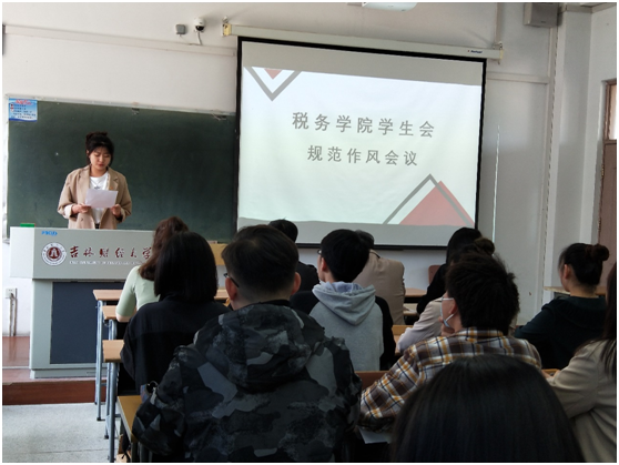 袁艺菲同学向在场人员宣读《关于学联员工会工作人员改进作风服务同学的若干规定》的具体内容,并分析目前公司员工会在作风建设方面存在的问题,提出应从员工会工作人员加强专业知识学习、模范遵守校级规定、营造平等氛围、摒弃庸俗习气等方面加强员工会建设,为公司员工会营造风清气正、服务为先的工作氛围,真正发挥好员工会同学服务于师生的纽带作用。