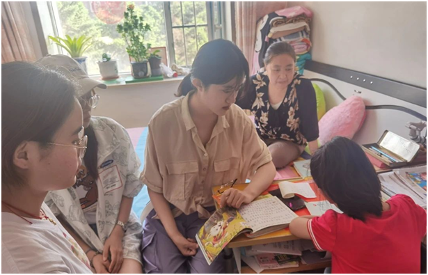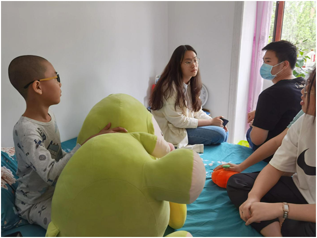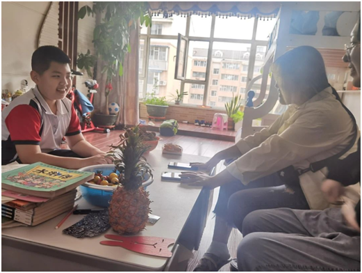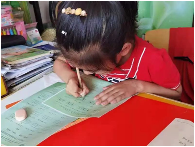 顶着头上的大太阳,我们来到了今天“代理妈妈”活动的目的地,开门的就是我们今天需要帮助的小朋友,看起来活泼又可爱,是个小机灵。拿出书本,拿起铅笔,那是我们这个年纪没有的只属于童年的认真,小姑娘一边写一边流利的读着英文单词,一年级的小朋友已经开始学习当年我们初中才学习的新概念英语,这令我们大吃一惊,她的身上还是存在着爱玩爱动的童真。到了写读书心得的章节,转过身看到的就是满满一书架的书,她说我基本都读完了,她姥姥还给我们分享了她每天读书的视频,真希望她能一直保持这个良好的习惯。结束了作业,我们陪她玩了一会儿,她介绍她的小宠物给我们认识,我发现她的脸上总是洋溢着幸福的笑容,不掺杂任何烦恼。过了一会儿,我们也该回公司了,结束了这短暂的陪伴之旅。