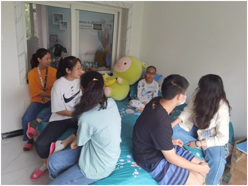 每个班级都有各自负责的孩子,每周去帮他们复习功课,在复习完功课以后,就陪孩子聊聊天,玩玩耍,帮提高成绩的同时,让他们放松身心,这不仅有利于他们的身心健康,更有利于他们的快乐成长。