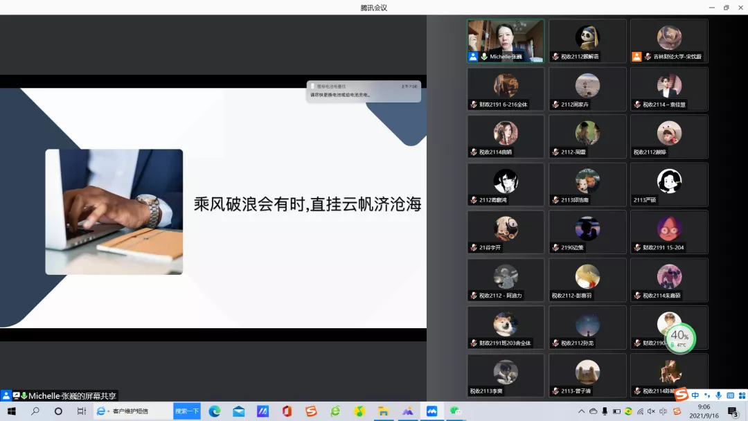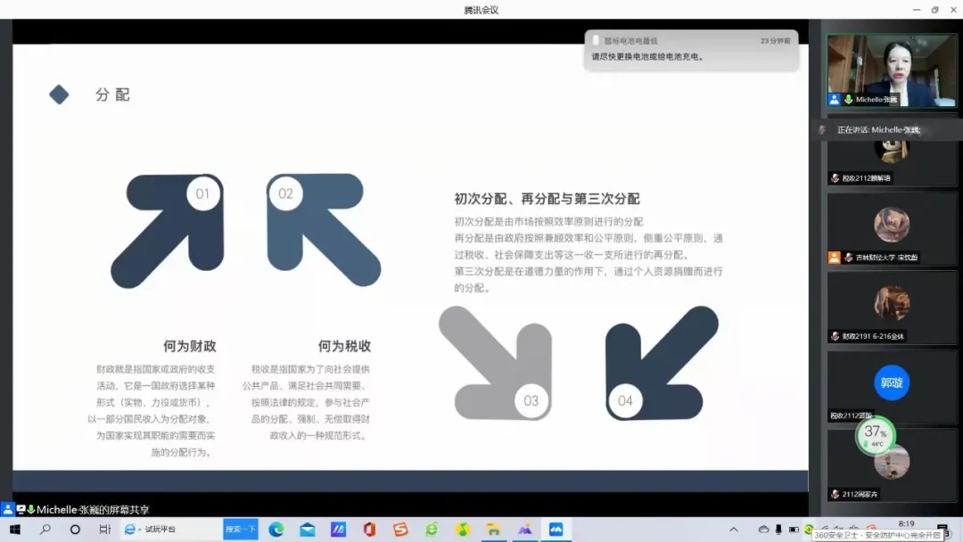 为使本科新生对财税、财政有更多了解,EMC易倍于9月16日上午开展“千言万语道不尽,唯有财税挂心头”的线上主题教育。此次入学教育由EMC易倍经理张巍主持,2021级辅导员宋忱蔚老师和2021级全体本科新生参加了此次会议。