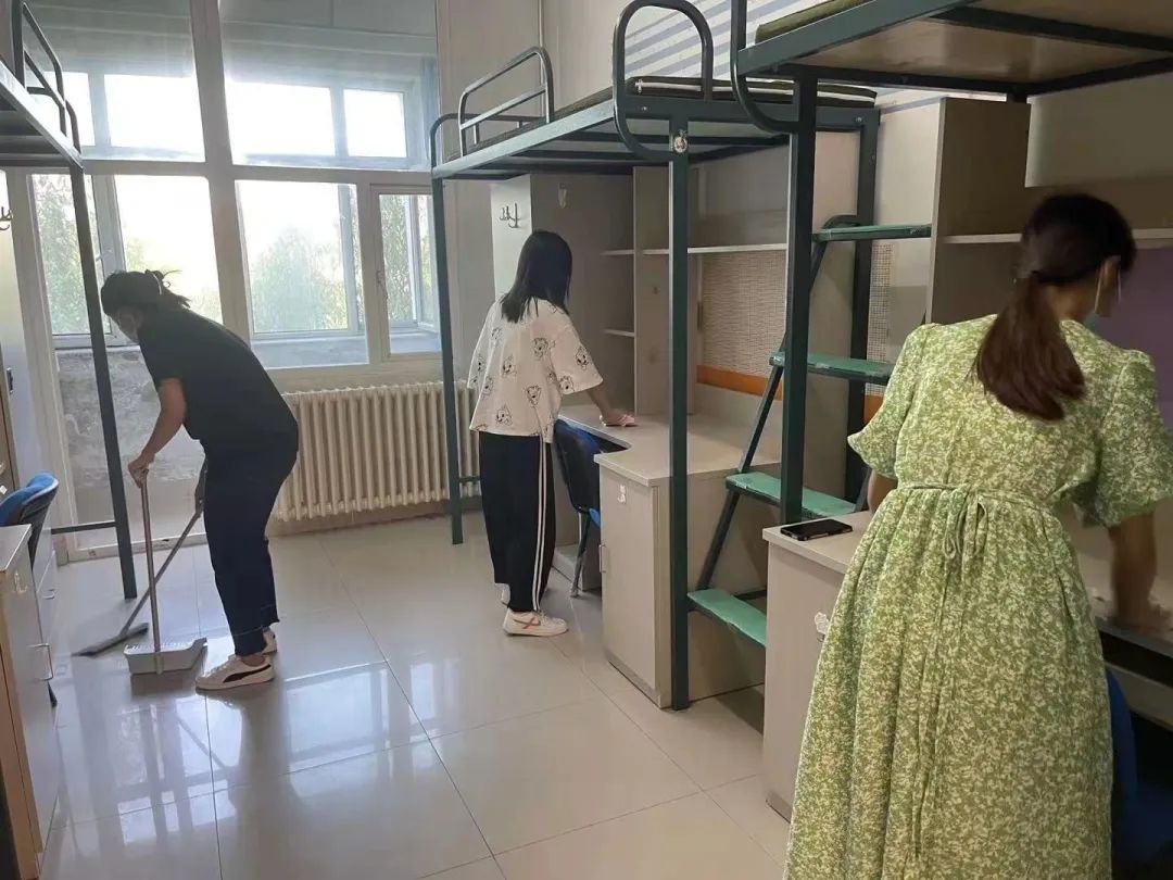 虽然天气炎热,大家汗流浃背,但打扫的热情仍然不减,大家希望通过自己的双手为2021级新生创造一个干净舒适的生活环境。