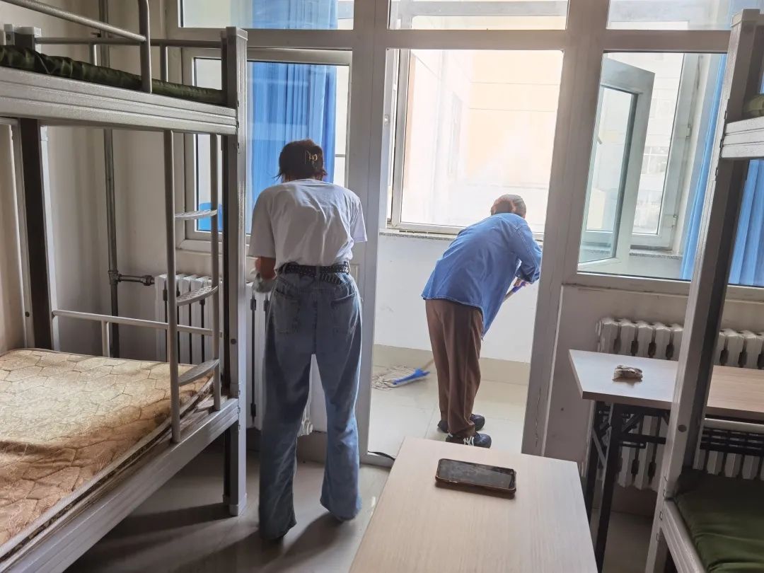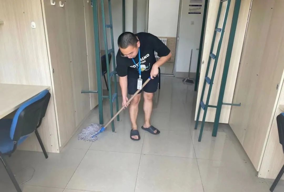 员工志愿者按照所安排的劳动区域,分工协作,积极投身到清洁队伍中。开窗通风、扫地拖地、擦拭桌面柜子,细致地打扫了宿舍的每一个角落。从上至下,从里到外,将书桌擦拭的一尘不染,让宿舍变得更加整洁明亮。