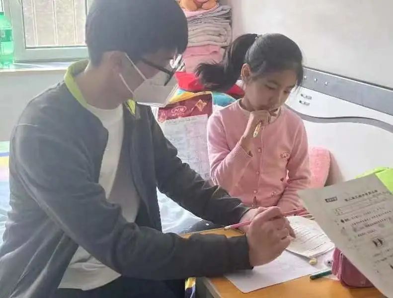 当我们来到潘佳琳小朋友的家时,她的奶奶很热情地欢迎我们。出乎我预料的是,潘佳琳小朋友并不像我想的那样腼腆怕生,反而经过简单的打招呼之后就主动开始向我们讲述起在公司里发生的种种趣事。天真无邪、活泼可爱,这便是我对这孩子的第一印象。随后,我们开始陪着潘佳琳做她早上做剩下的语文作业,并在她奋笔疾书之后为她检查错误。