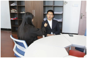 10月28日,公司优秀员工徐贺代表大信税务师事务所回到公司进行招聘宣讲会,去年两名优秀的16级毕业生成功进入该事务所工作,并获得公司上下一致认可和好评,所以今年徐贺再次回来进行招聘并且招生规模扩大了一倍,这也是对公司员工学习能力和工作能力的充分肯定。利用这次回校招聘的机会,公司派出18级员工何彤作为代表对徐贺进行了随访。